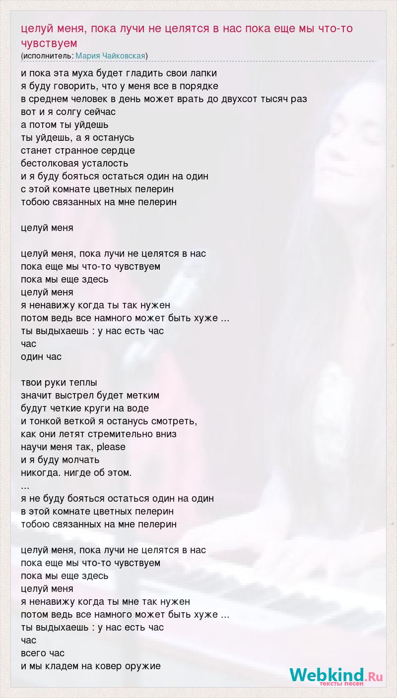Главная→Исполнители→Мария Чайковская→Целуй меня, пока лучи не целятся в нас пока еще мы что-то чувствуем
