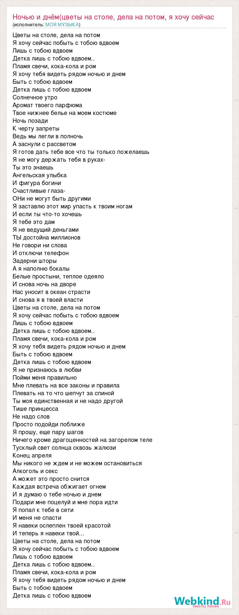 Ночью и днём(цветы на столе, дела на потом, я хочу сейчас побыть с тобою вдв