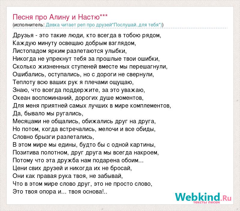Песня про Алину и Настю***