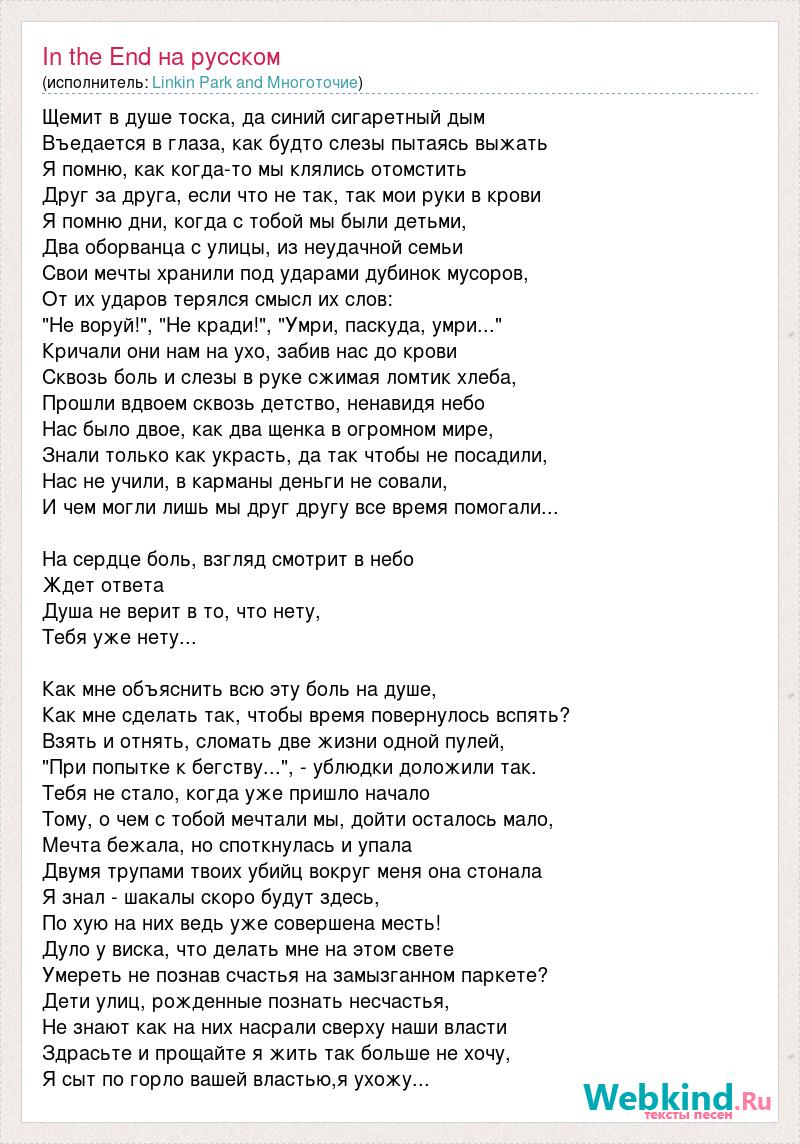 А как ты думаешь, о чем песня "In the End на русском" ?