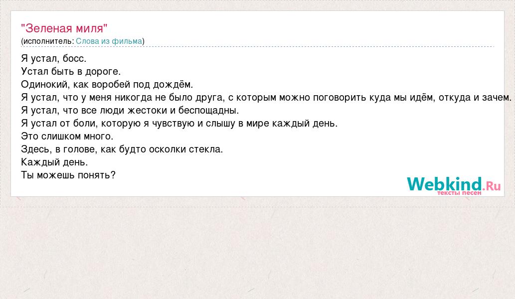 А как ты думаешь, о чем песня ""Зеленая миля"" ?