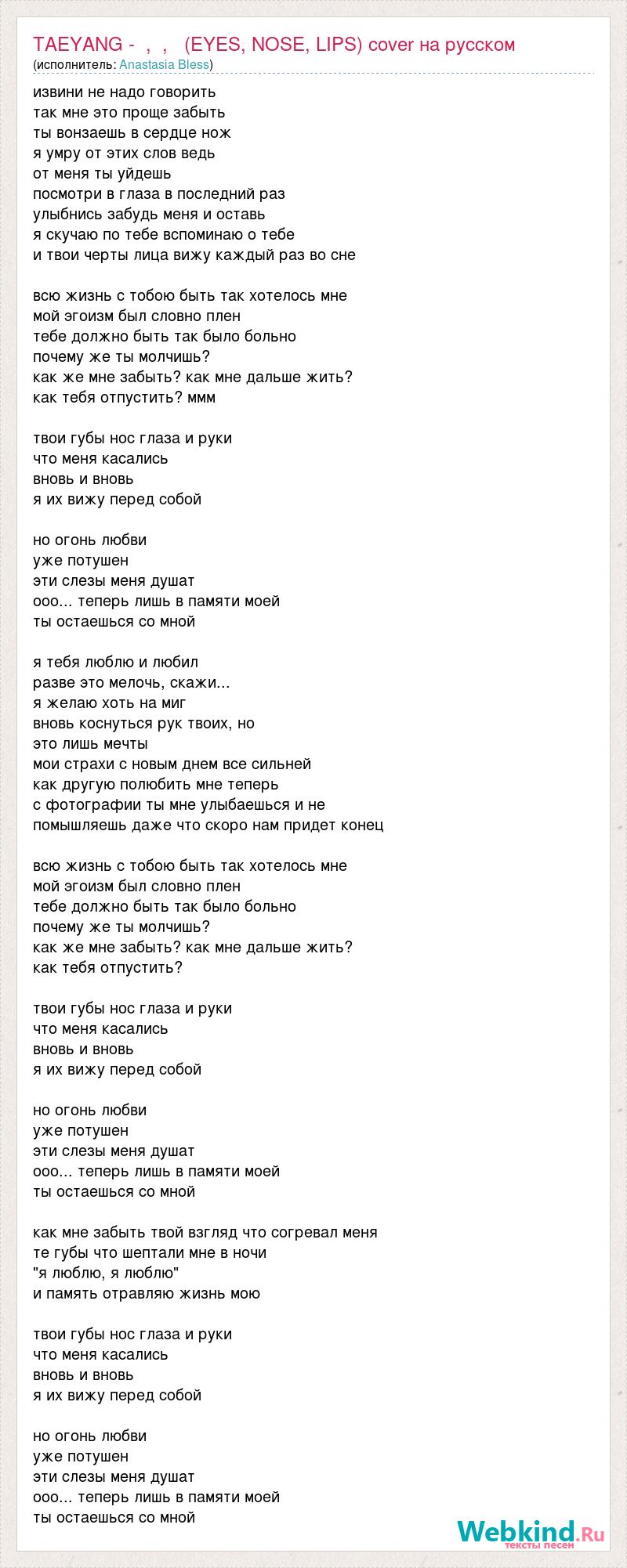 А как ты думаешь, о чем песня "TAEYANG - 눈, 코, 입 (EYES, NOSE, LIPS) cover на русском" ?