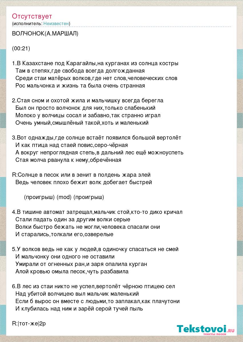 А как ты думаешь, о чем песня "ВОЛЧОНОК(А.МАРШАЛ)" ?