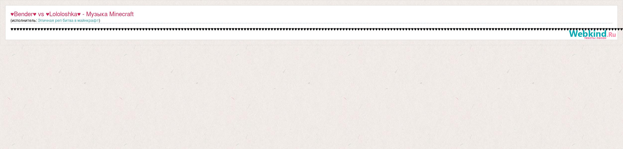 А как ты думаешь, о чем песня "♥Bender♥ vs ♥Lololoshka♥ - Музыка Minecraft" ?