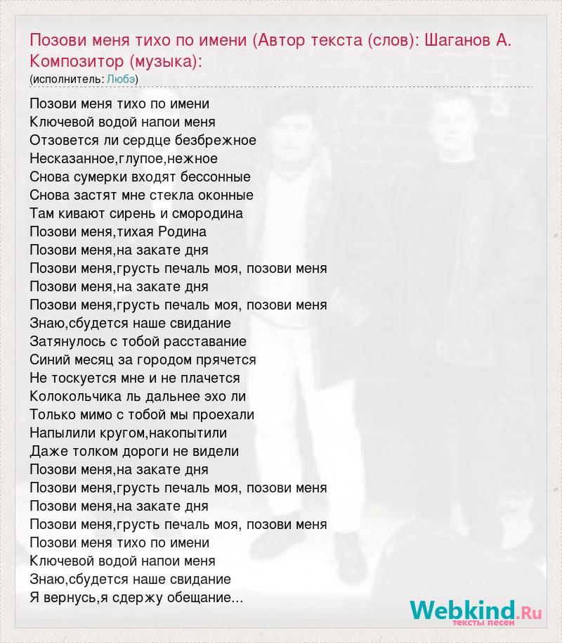 Позови меня тихо по имени (Автор текста (слов): Шаганов А. Композитор
