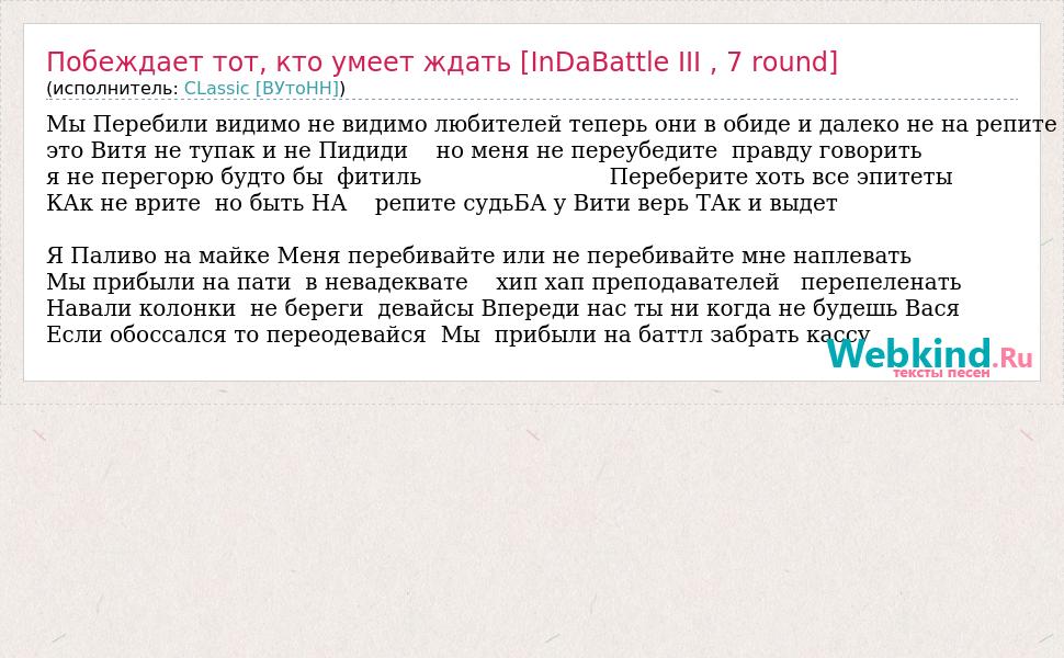 А как ты думаешь, о чем песня "Побеждает тот, кто умеет ждать [InDaBattle III , 7 round]" ?