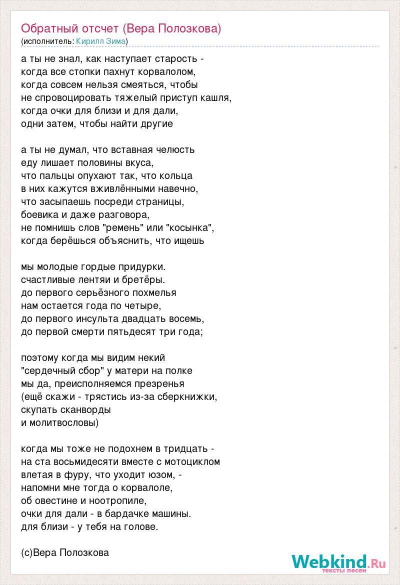 А как ты думаешь, о чем песня "Обратный отсчет (Вера Полозкова)" ?