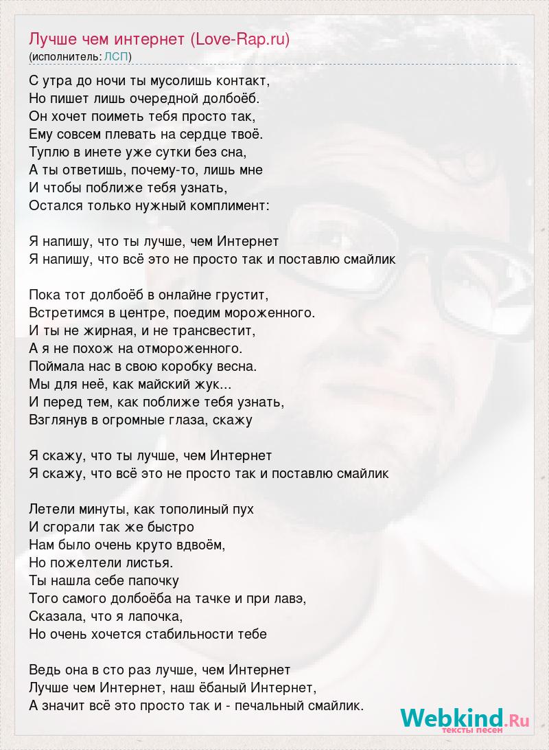 А как ты думаешь, о чем песня "Лучше чем интернет (Love-Rap.ru)" ?