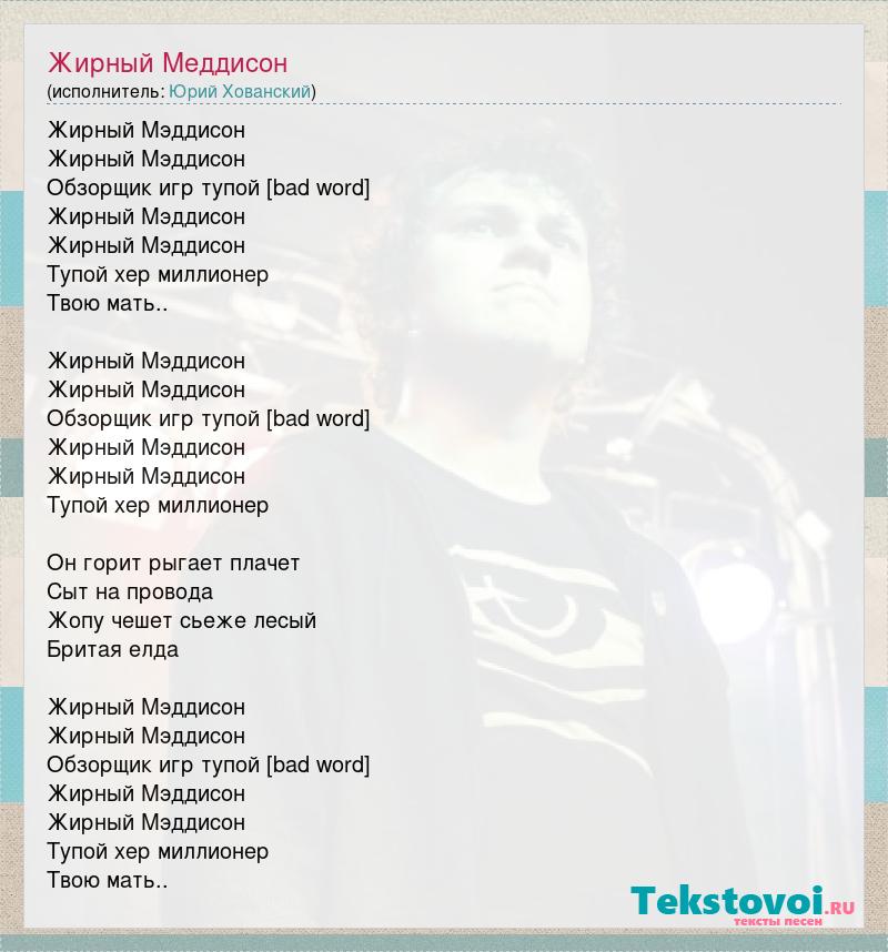 А как ты думаешь, о чем песня "Жирный Меддисон" ?