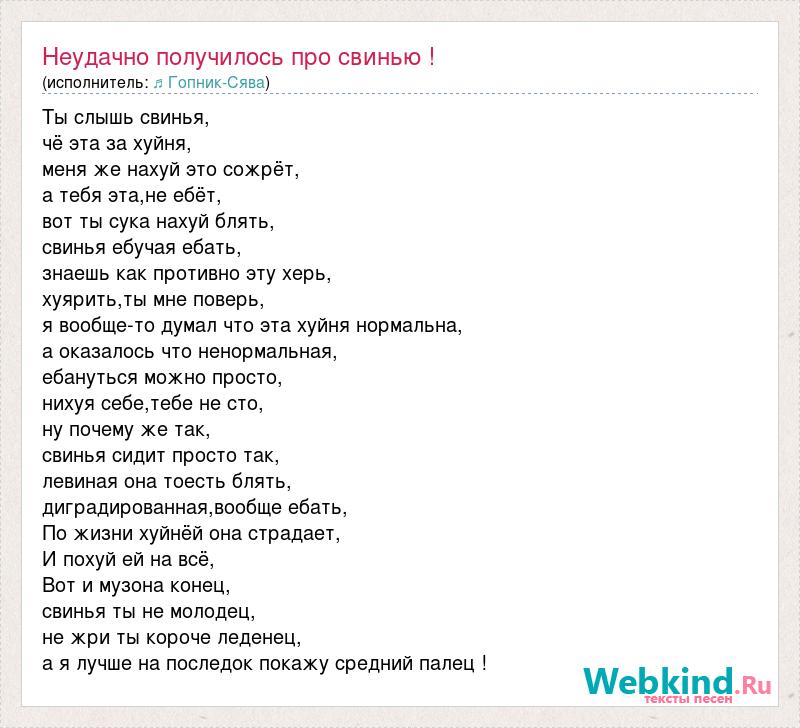 А как ты думаешь, о чем песня "Неудачно получилось про свинью !" ?