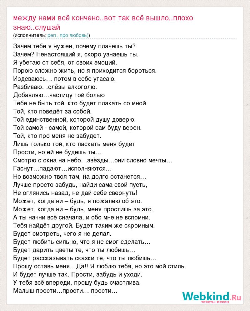 Между нами всё кончено..вот так всё вышло..плохо знаю..слушай эту песню..и не вс