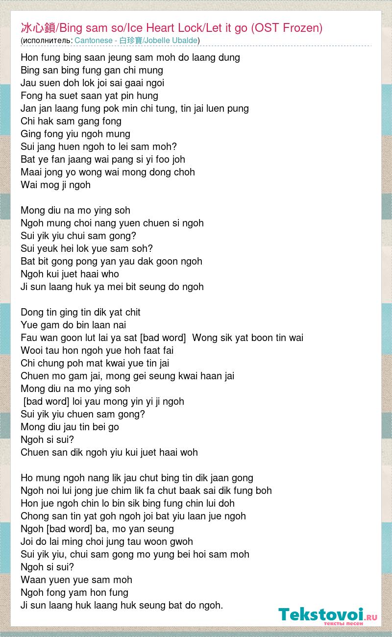 Главная→Исполнители→Cantonese - 白珍寶/Jobelle Ubalde→冰心鎖/Bing sam so/Ice Heart Lock/Let it go (OST Frozen)