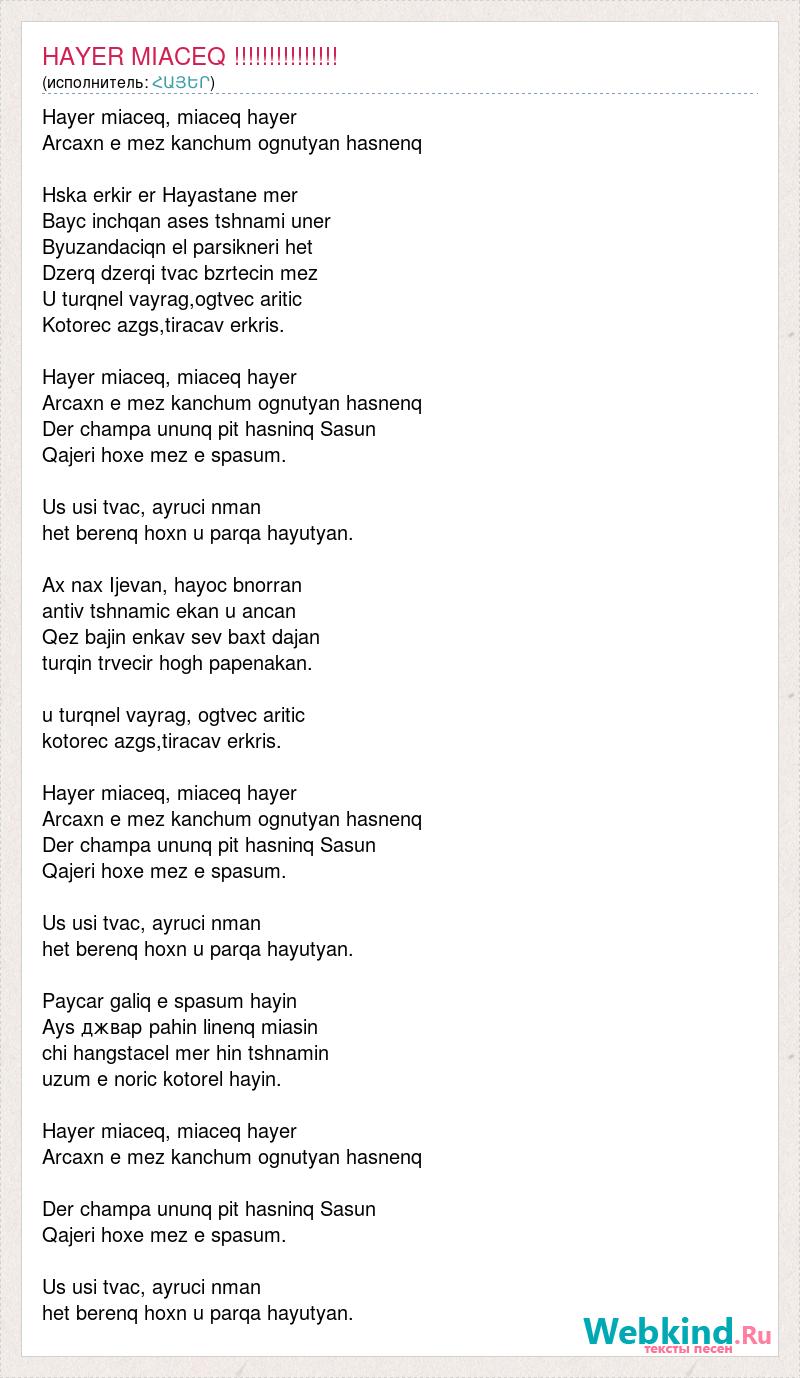 А как ты думаешь, о чем песня "HAYER MIACEQ !!!!!!!!!!!!!!!" ?