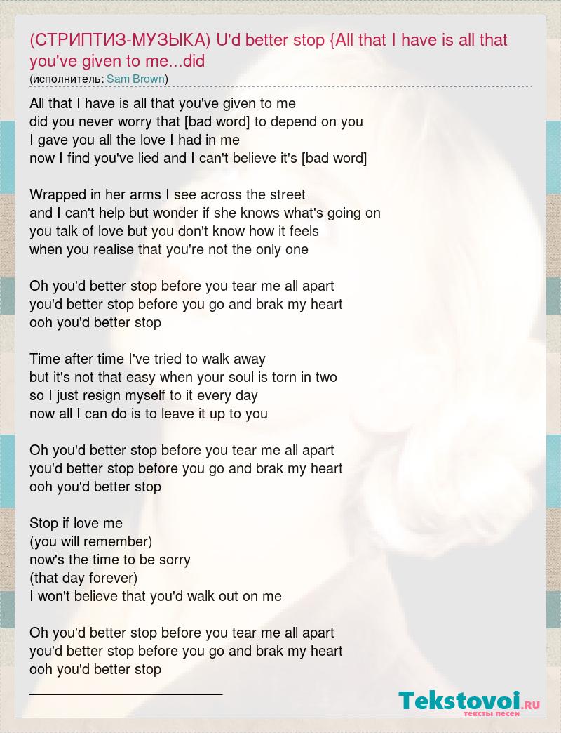 (СТРИПТИЗ-МУЗЫКА) U'd better stop {All that I have is all that you&