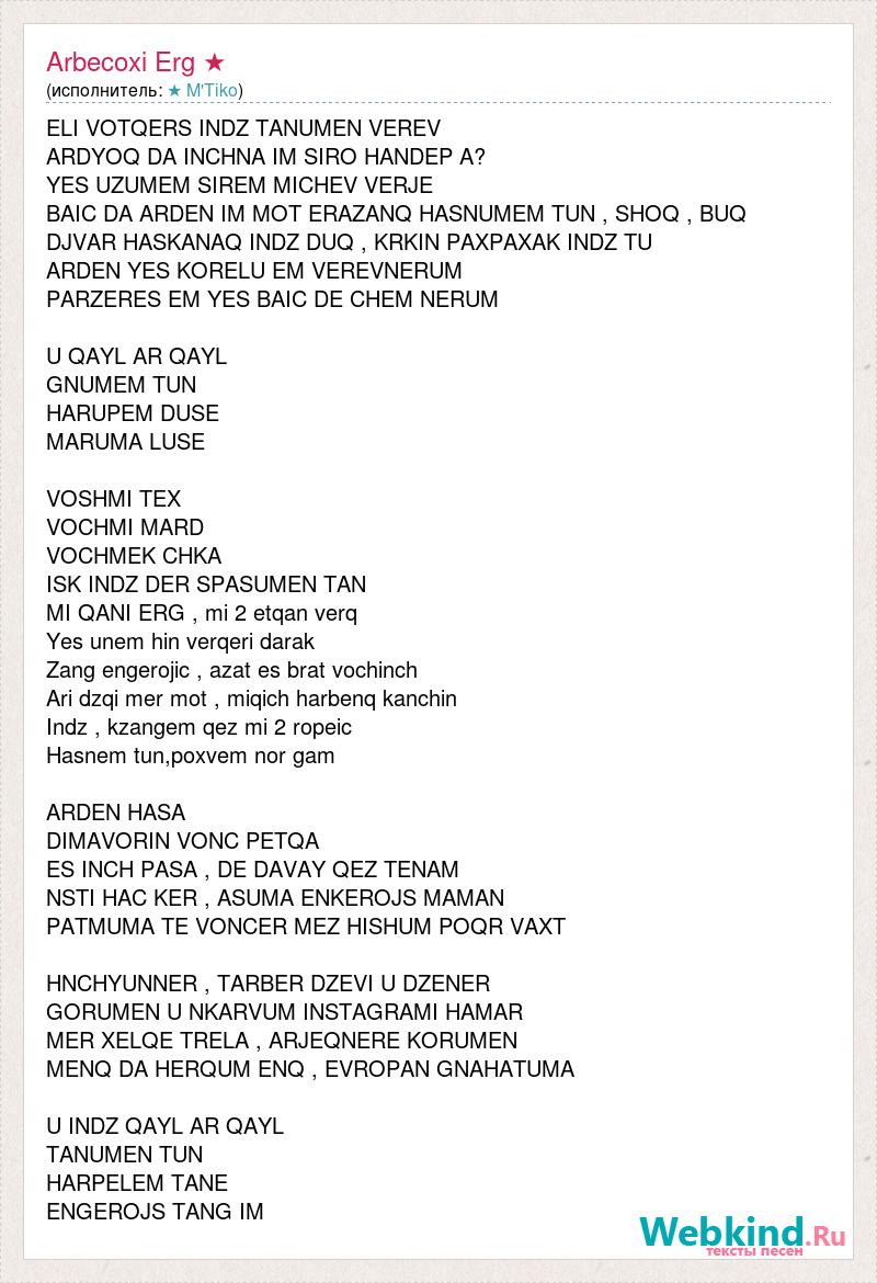 А как ты думаешь, о чем песня "Arbecoxi Erg ★" ?