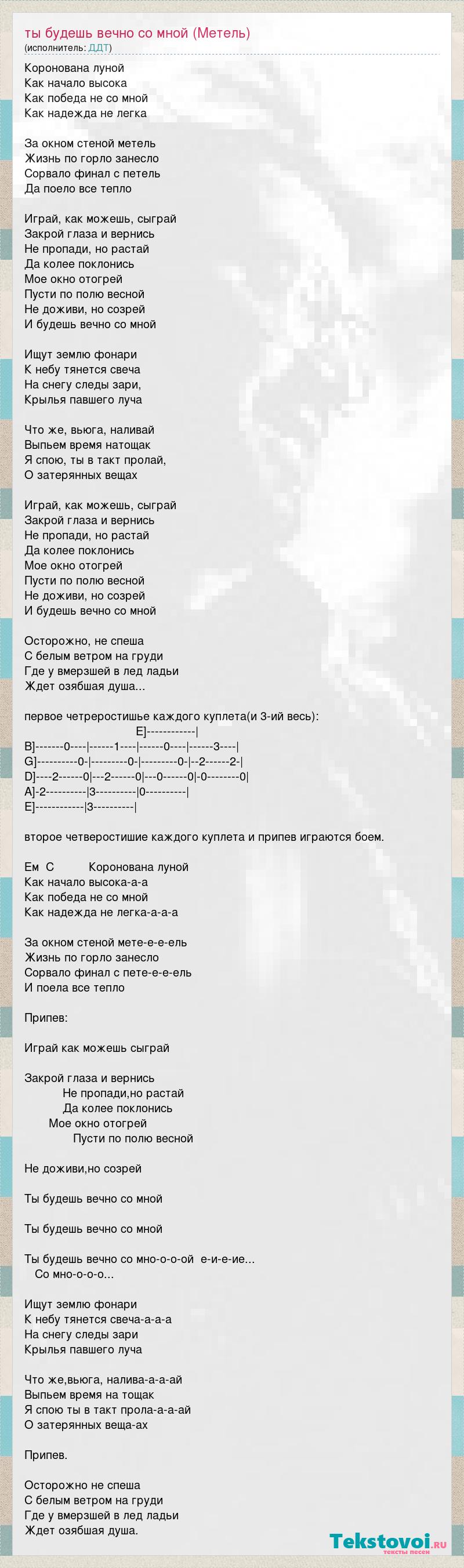А как ты думаешь, о чем песня "Ты будешь вечно со мной (Метель)" ?
