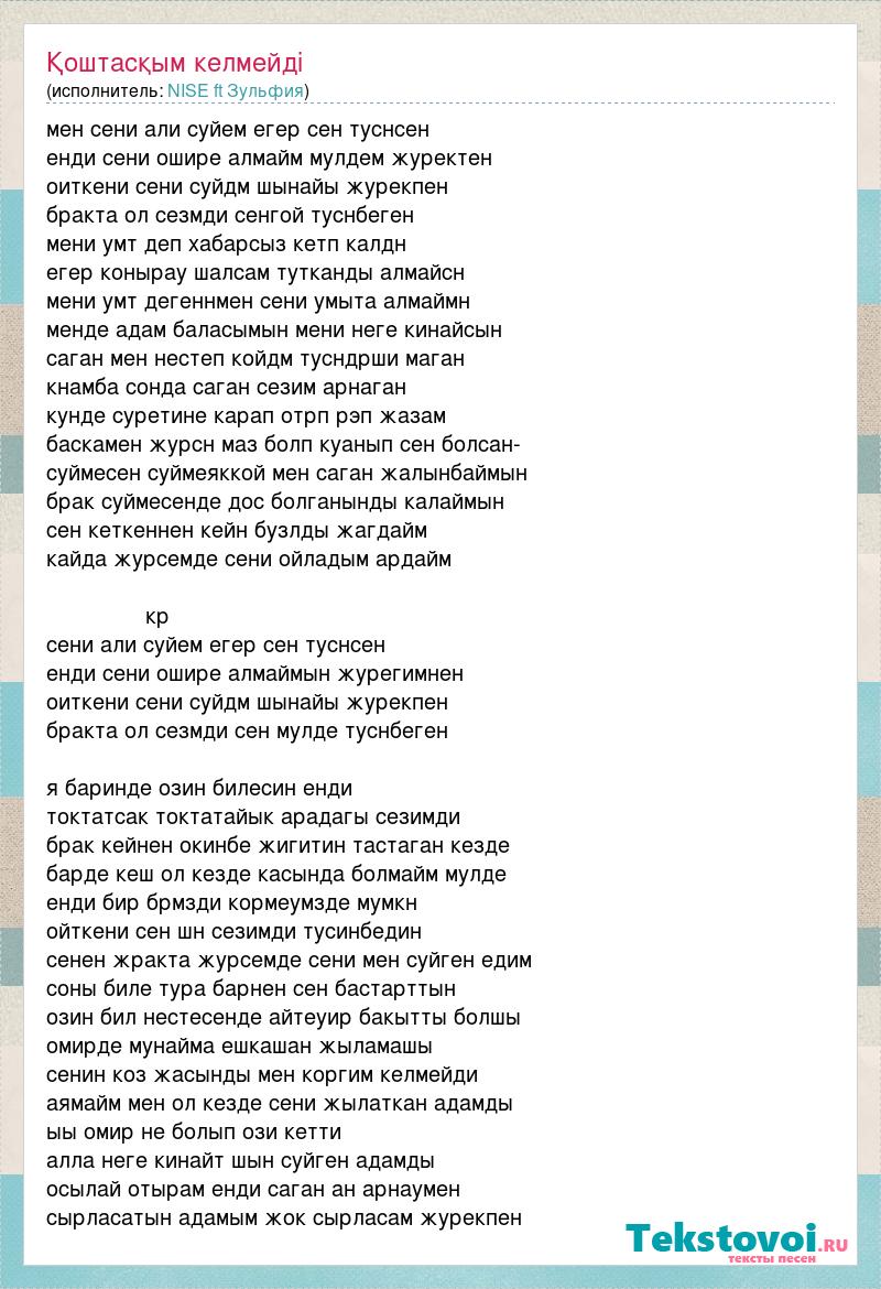 сени али суйем егер сен туснcен