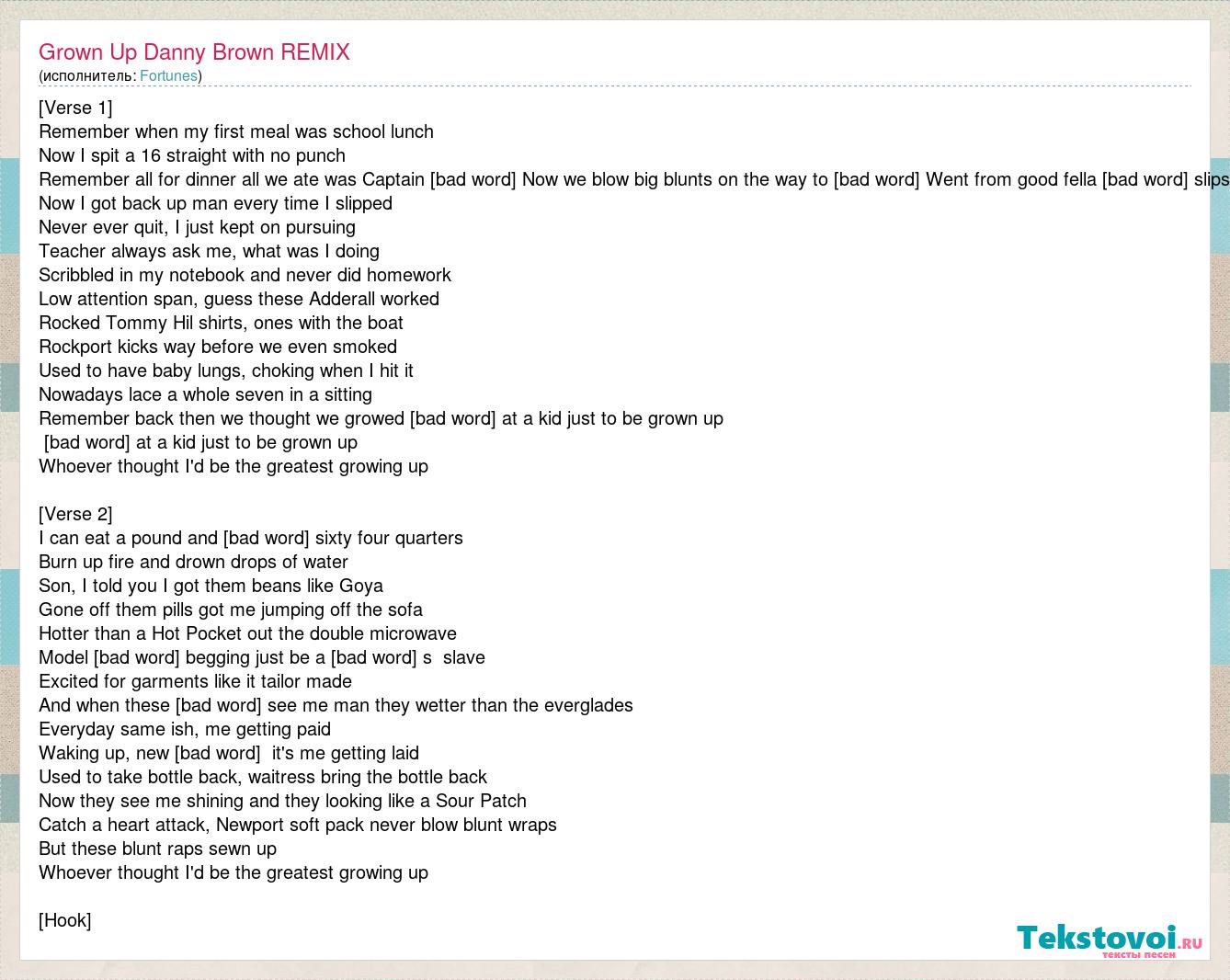 А как ты думаешь, о чем песня "Grown Up Danny Brown REMIX" ?