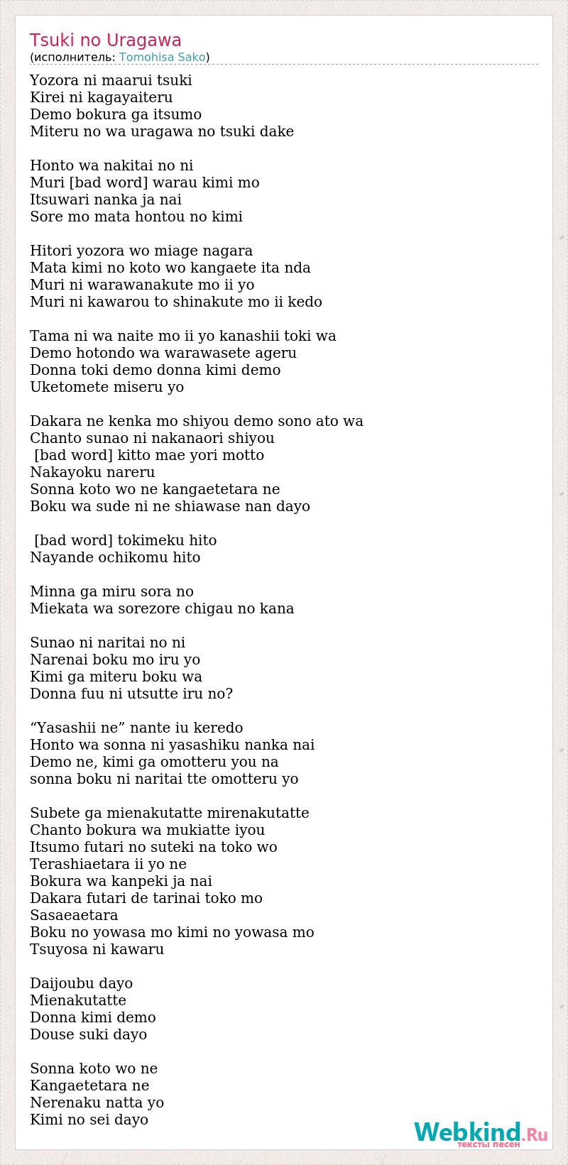 А как ты думаешь, о чем песня "Tsuki no Uragawa" ?