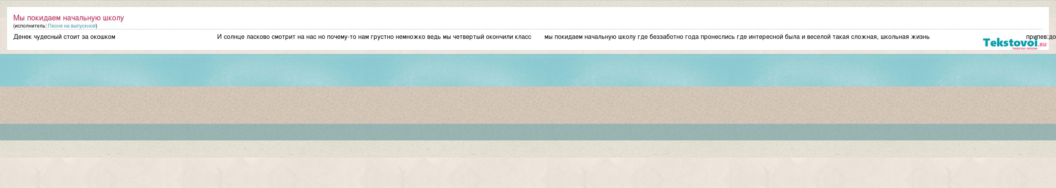 Денек чудесный стоит за окошком И солнце ласково смотрит на нас но почему-то нам грустно немножко ведь мы четвертый окончили класс мы покидаем начальную школу где беззаботно года пронеслись где интересной была и веселой такая сложная, школьная жизнь припев:до