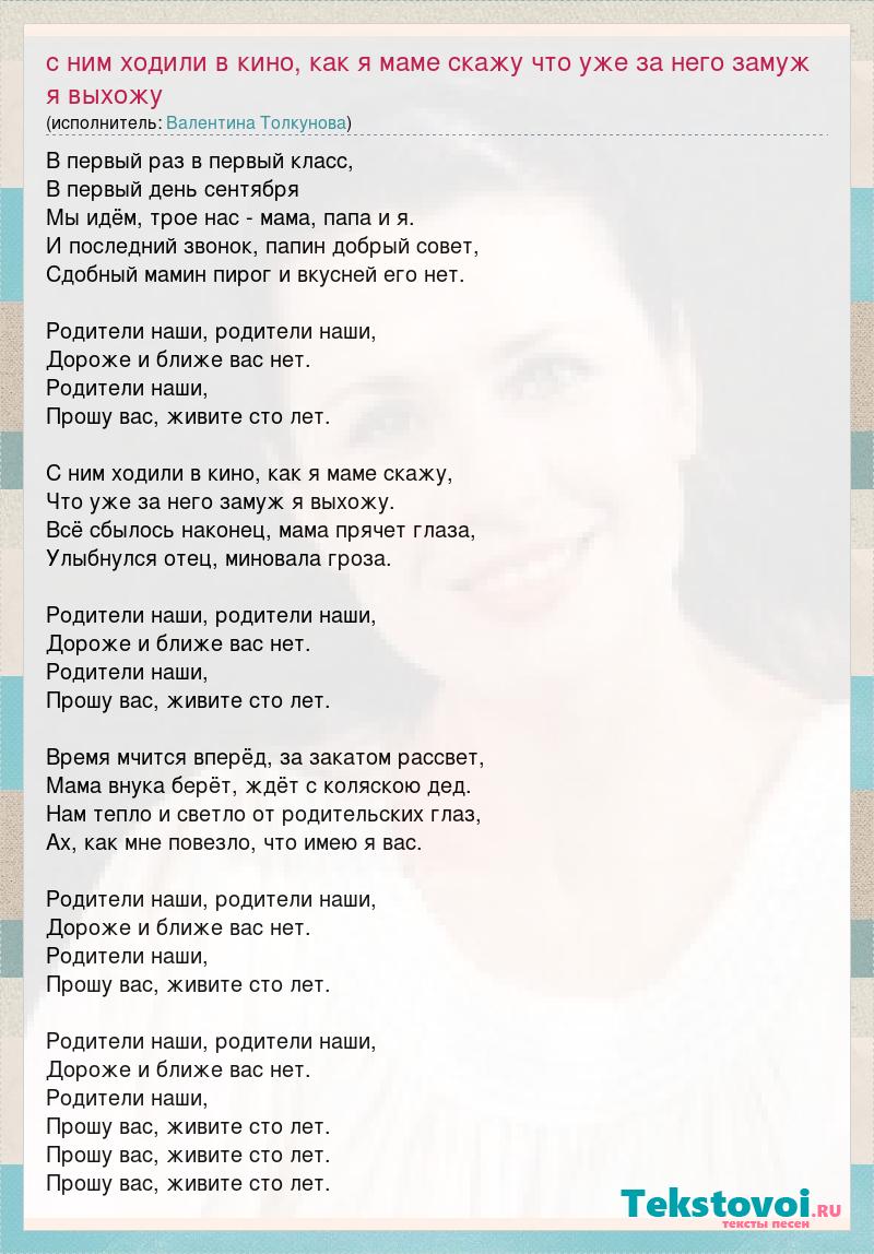 Главная→Исполнители→Валентина Толкунова→С ним ходили в кино, как я маме скажу что уже за него замуж я