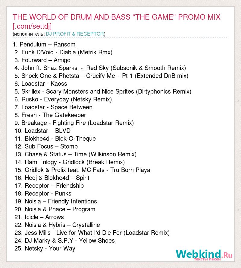 Главная→Исполнители→DJ PROFIT & RECEPTOR→THE WORLD OF DRUM AND BASS "THE GAME" PROMO MIX [.com/settdj]