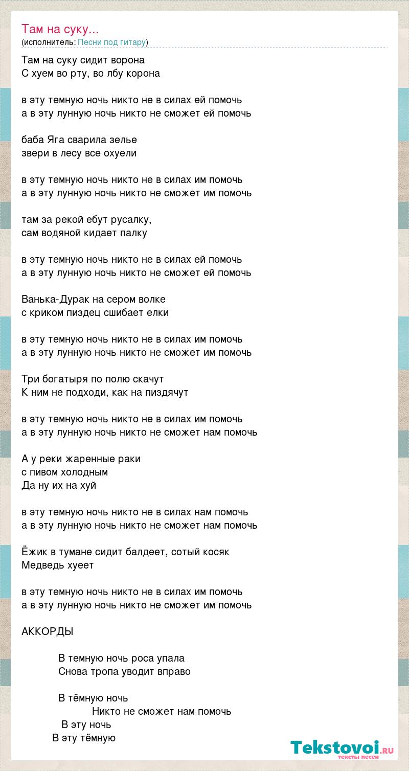 А как ты думаешь, о чем песня "Там на суку..." ?