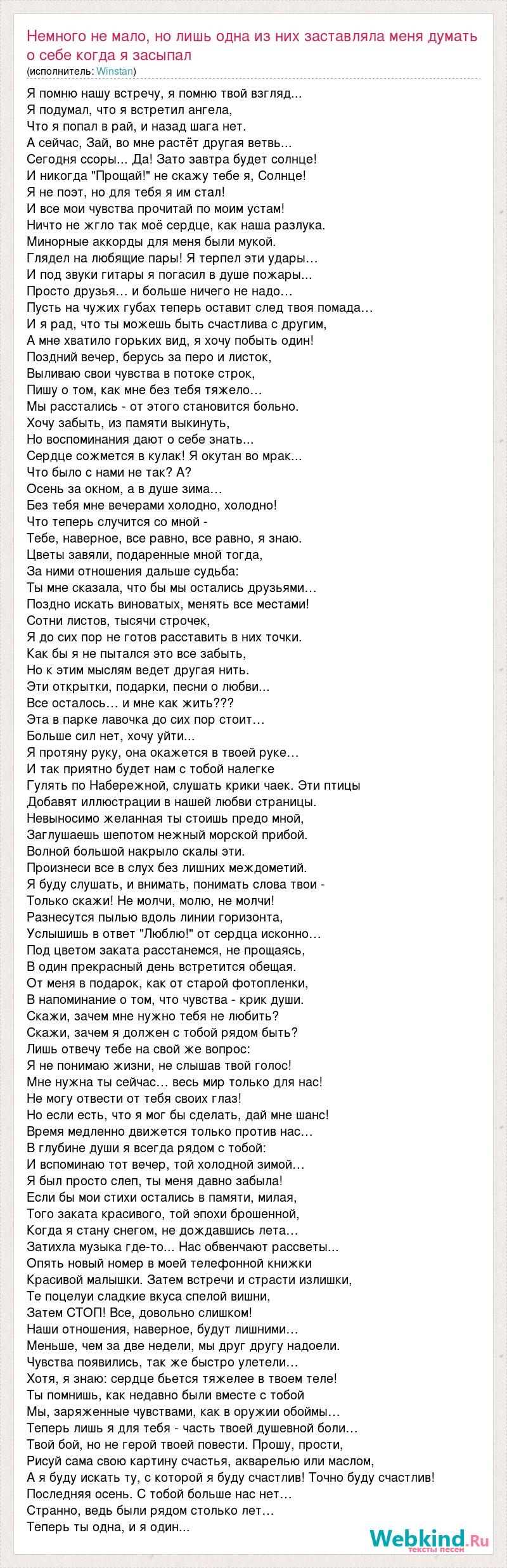 Главная→Исполнители→Winstan→Немного не мало, но лишь одна из них заставляла меня думать о себе когда я