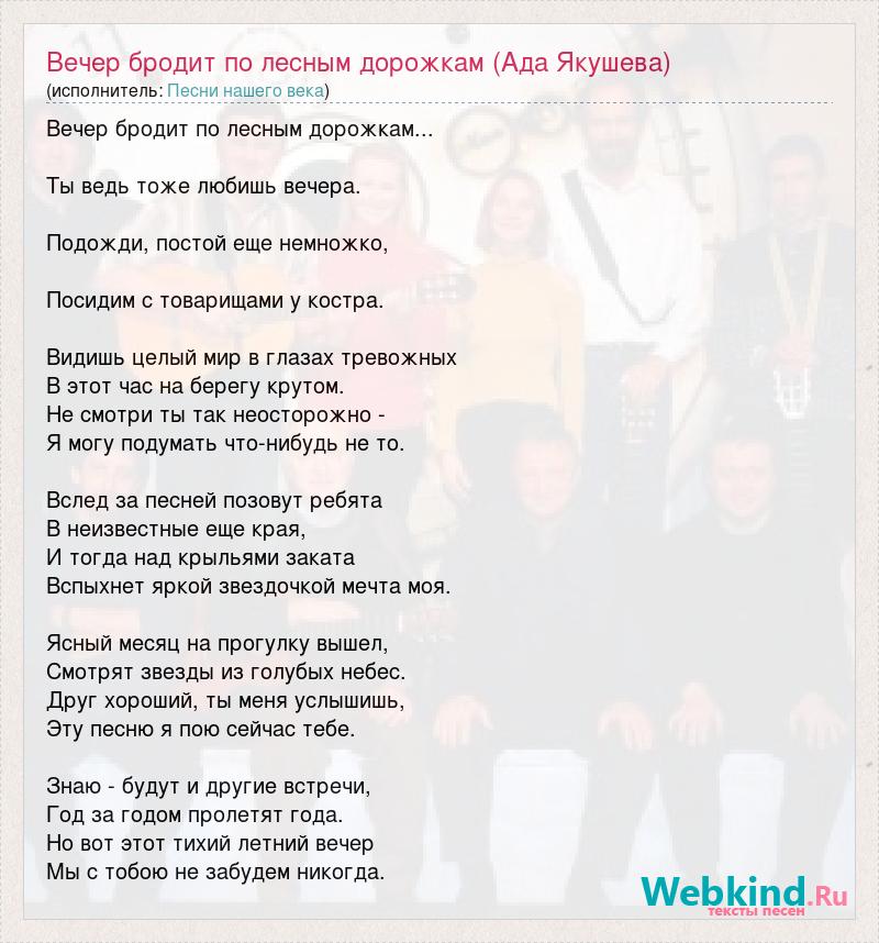 А как ты думаешь, о чем песня "Вечер бродит по лесным дорожкам (Ада Якушева)" ?