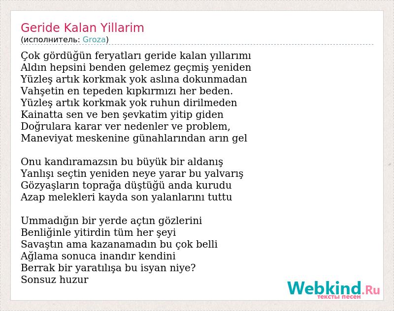 А как ты думаешь, о чем песня "Geride Kalan Yillarim" ?