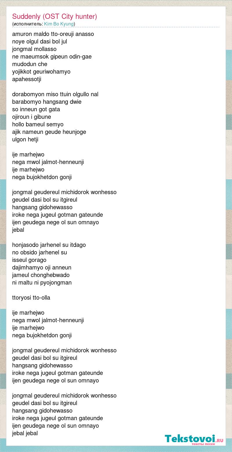А как ты думаешь, о чем песня "Suddenly (OST City hunter)" ?
