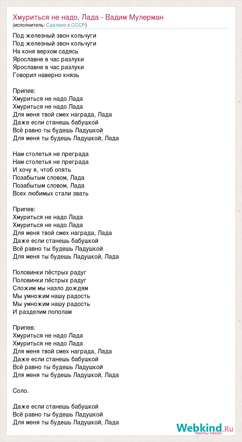 А как ты думаешь, о чем песня "Хмуриться не надо, Лада - Вадим Мулерман" ?
