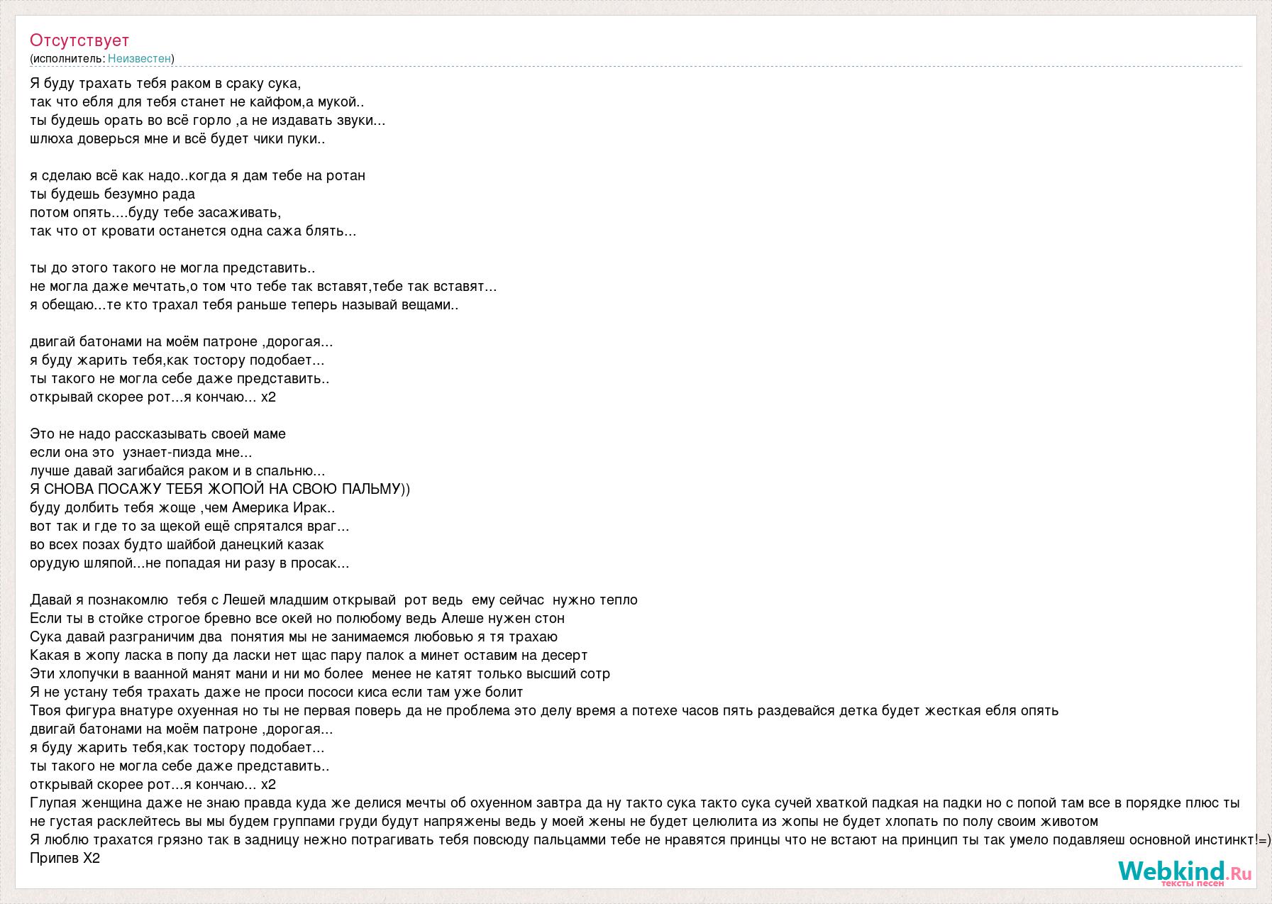А как ты думаешь, о чем песня "Я буду трахать тебя раком в сраку сука" ?