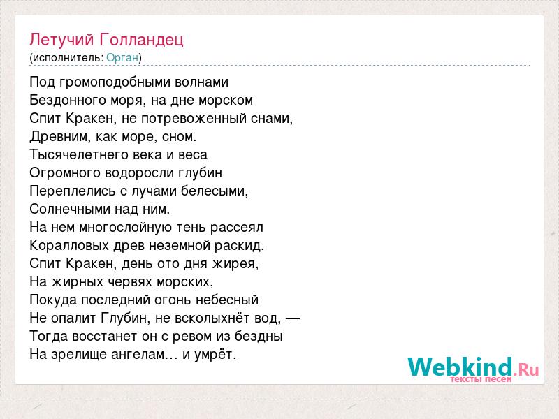 А как ты думаешь, о чем песня "Летучий Голландец" ?