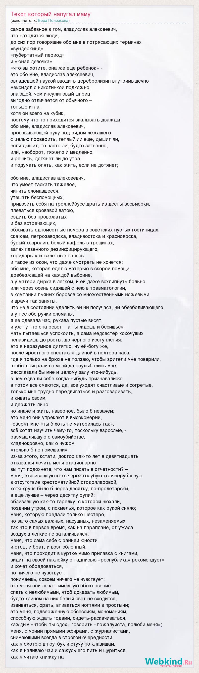 А как ты думаешь, о чем песня "Текст который напугал маму" ?