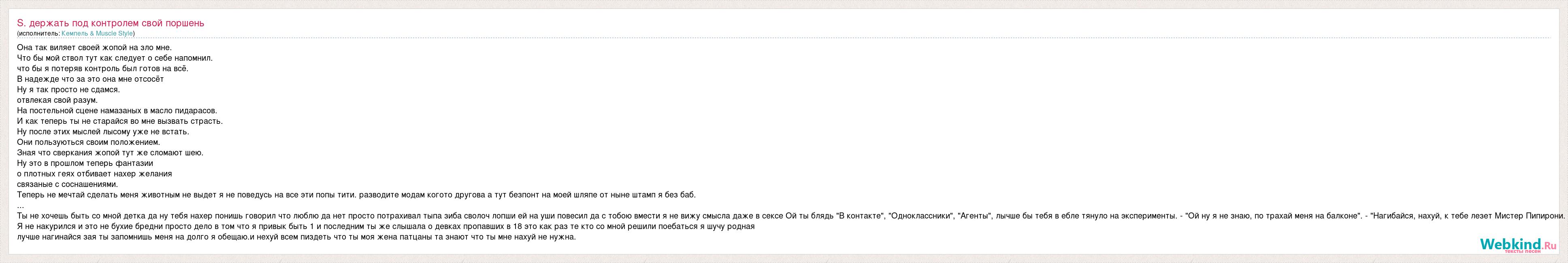 А как ты думаешь, о чем песня "S. держать под контролем свой поршень" ?