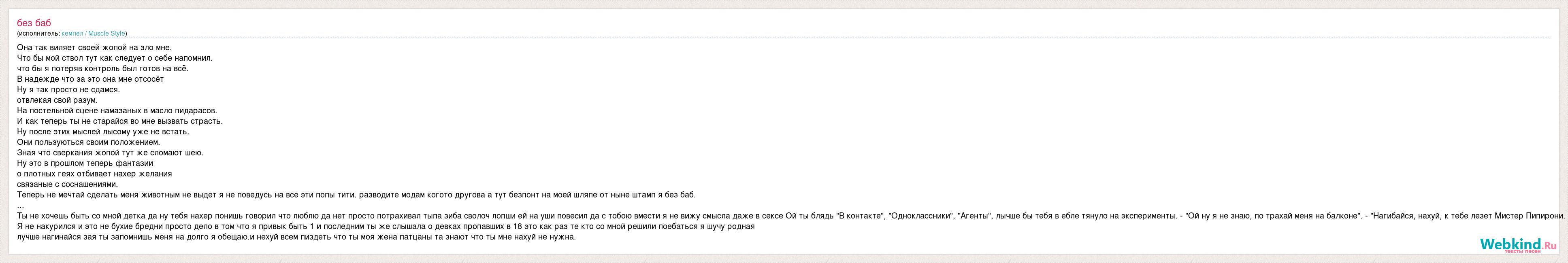 Она так виляет своей жопой на зло мне. Что бы мой ствол тут как следует о себе напомнил. что бы я потеряв контроль был готов на всё. В надежде что за это она мне отсосёт Ну я так просто не сдамся. отвлекая свой разум. На постельной сцене намазаных в масло пидарасов. И как теперь ты не старайся во мне вызвать страсть. Ну после этих мыслей лысому уже не встать. Они пользуються своим положением. Зная что сверкания жопой тут же сломают шею. Ну это в прошлом теперь фантазии о плотных геях отбивает нахер желания связаные с соснашениями. Теперь не мечтай сделать меня животным не выдет я не поведусь на все эти попы тити. разводите модам когото другова а тут безпонт на моей шляпе от ныне штамп я без баб. ... Ты не хочешь быть со мной детка да ну тебя нахер понишь говорил что люблю да нет просто потрахивал тыпа зиба сволоч лопши ей на уши повесил да с тобою вмести я не вижу смысла даже в сексе Ой ты блядь "В контакте", "Одноклассники", "Агенты", лычше бы тебя в ебле тянуло на эксперименты. - "Ой ну я не знаю, по трахай меня на балконе". - "Нагибайся, нахуй, к тебе лезет Мистер Пипирони. Я не накурился и это не бухие бредни просто дело в том что я привык быть 1 и последним ты же слышала о девках пропавших в 18 это как раз те кто со мной решили поебаться я шучу родная лучше нагинайся зая ты запомнишь меня на долго я обещаю.и нехуй всем пиздеть что ты моя жена патцаны та знают что ты мне нахуй не нужна.