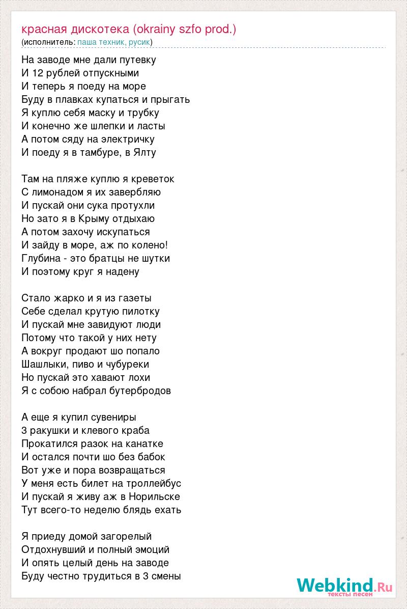 А как ты думаешь, о чем песня "Красная дискотека (okrainy szfo prod.)" ?