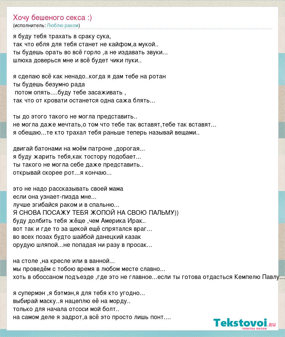 А как ты думаешь, о чем песня "Хочу бешеного секса :)" ?