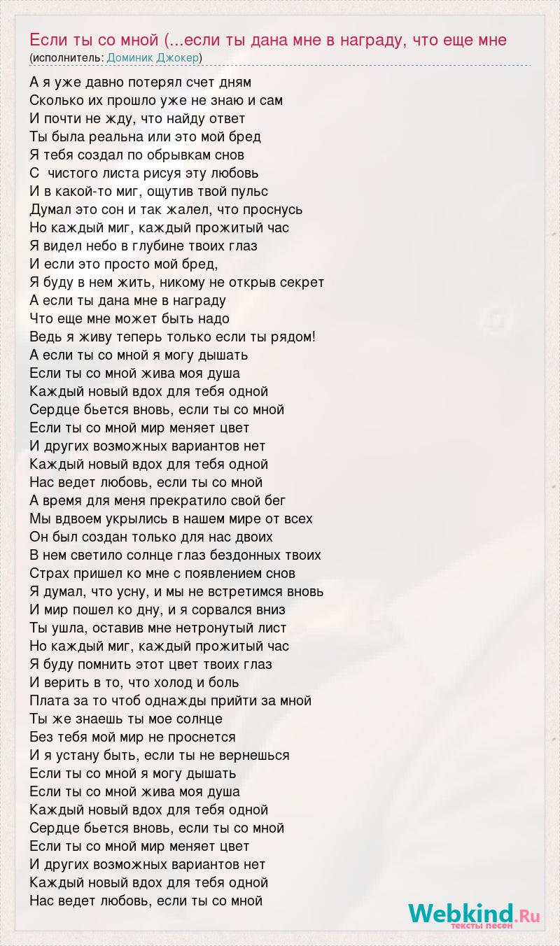 Главная→Исполнители→Доминик Джокер→Если ты со мной (...если ты дана мне в награду, что еще мне может быть