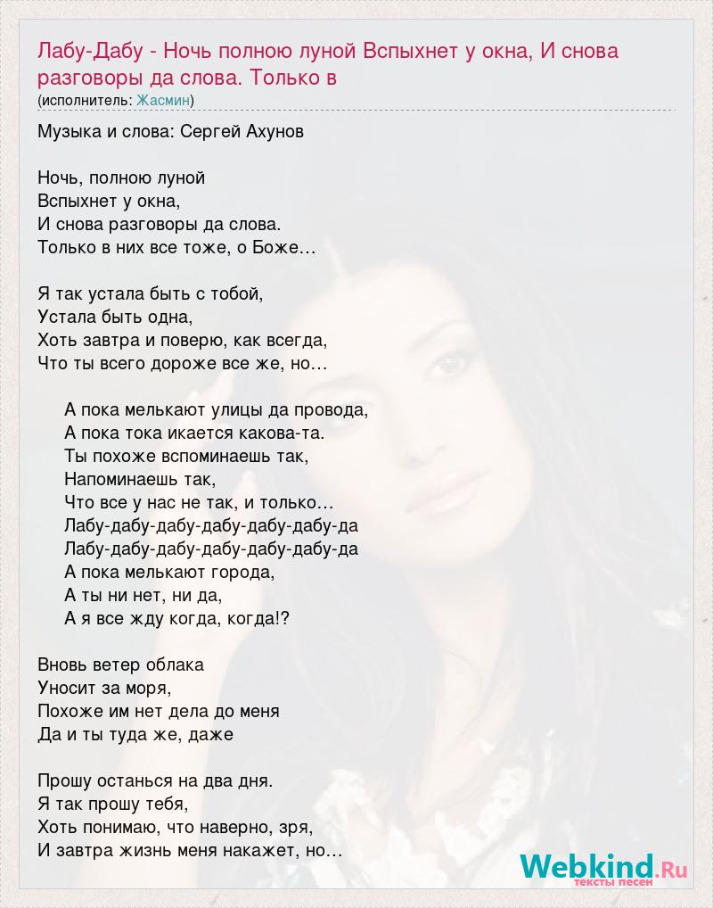 Лабу-Дабу - Ночь полною луной Вспыхнет у окна, И снова разговоры да слов