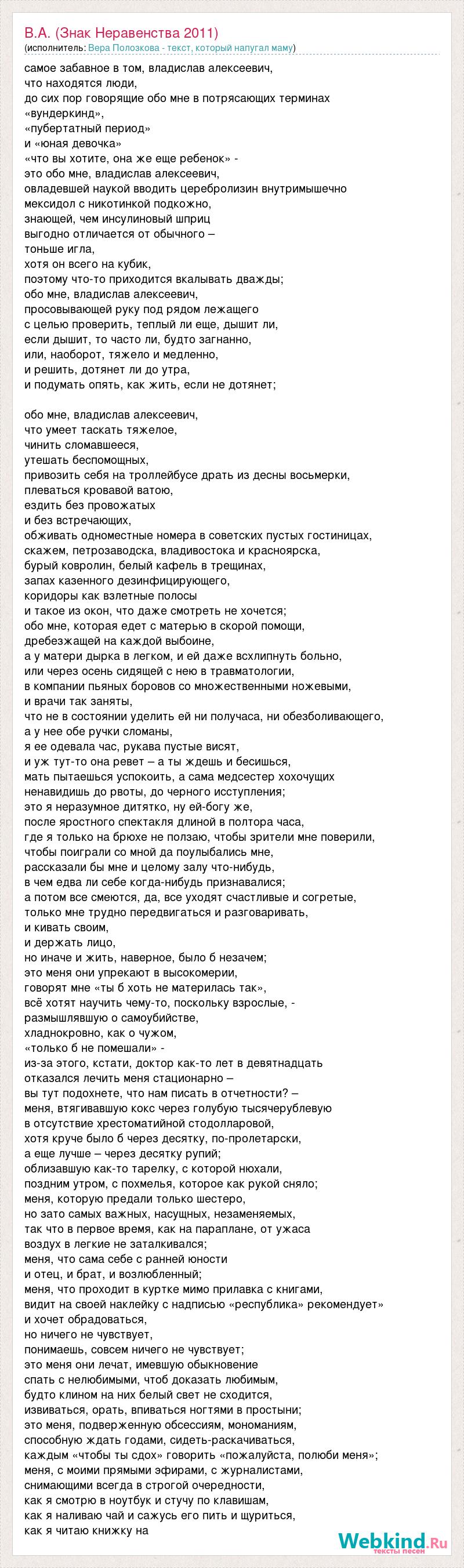 А как ты думаешь, о чем песня "В.А. (Знак Неравенства 2011)" ?