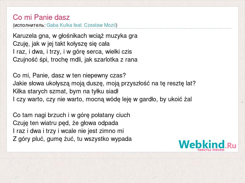 А как ты думаешь, о чем песня "Co mi Panie dasz" ?
