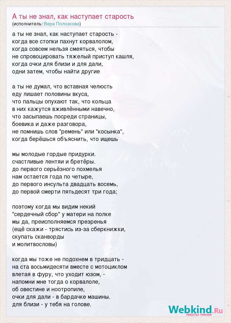 А как ты думаешь, о чем песня "А ты не знал, как наступает старость" ?