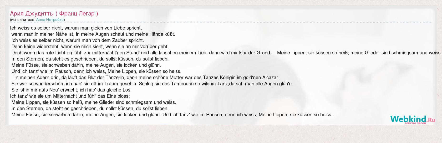 А как ты думаешь, о чем песня "Ария Джудитты ( Франц Легар )" ?