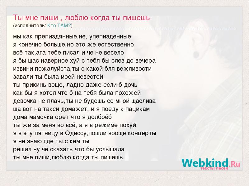 А как ты думаешь, о чем песня "Ты мне пиши , люблю когда ты пишешь" ?