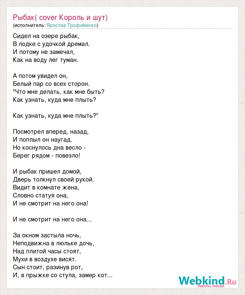 А как ты думаешь, о чем песня "Рыбак( cover Король и шут)" ?