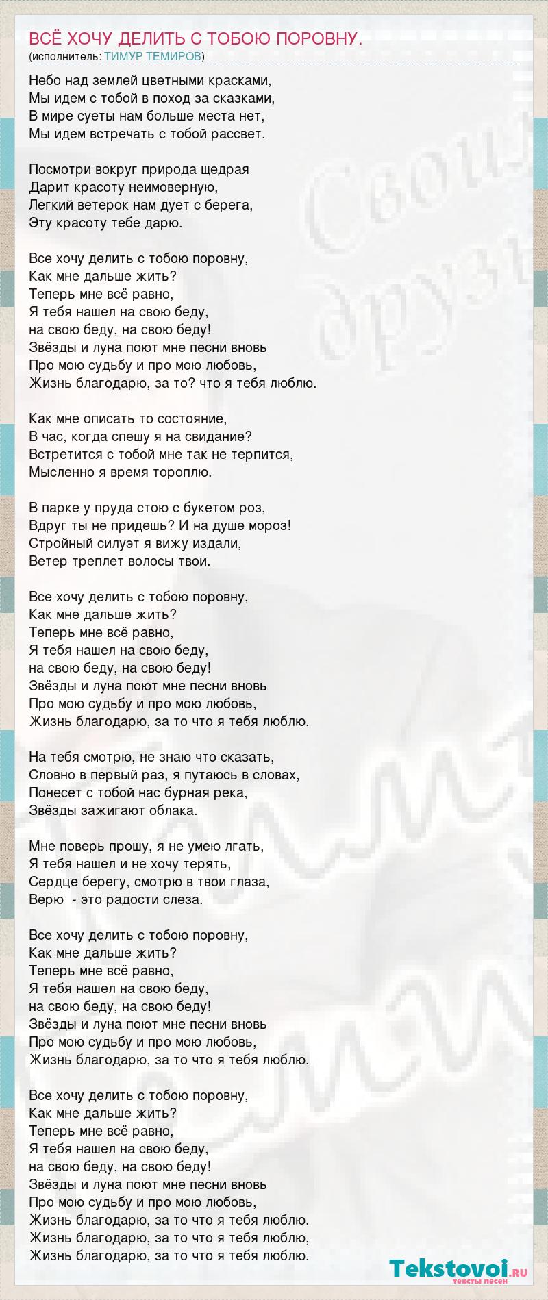 ВСЁ ХОЧУ ДЕЛИТЬ С ТОБОЮ ПОРОВНУ.