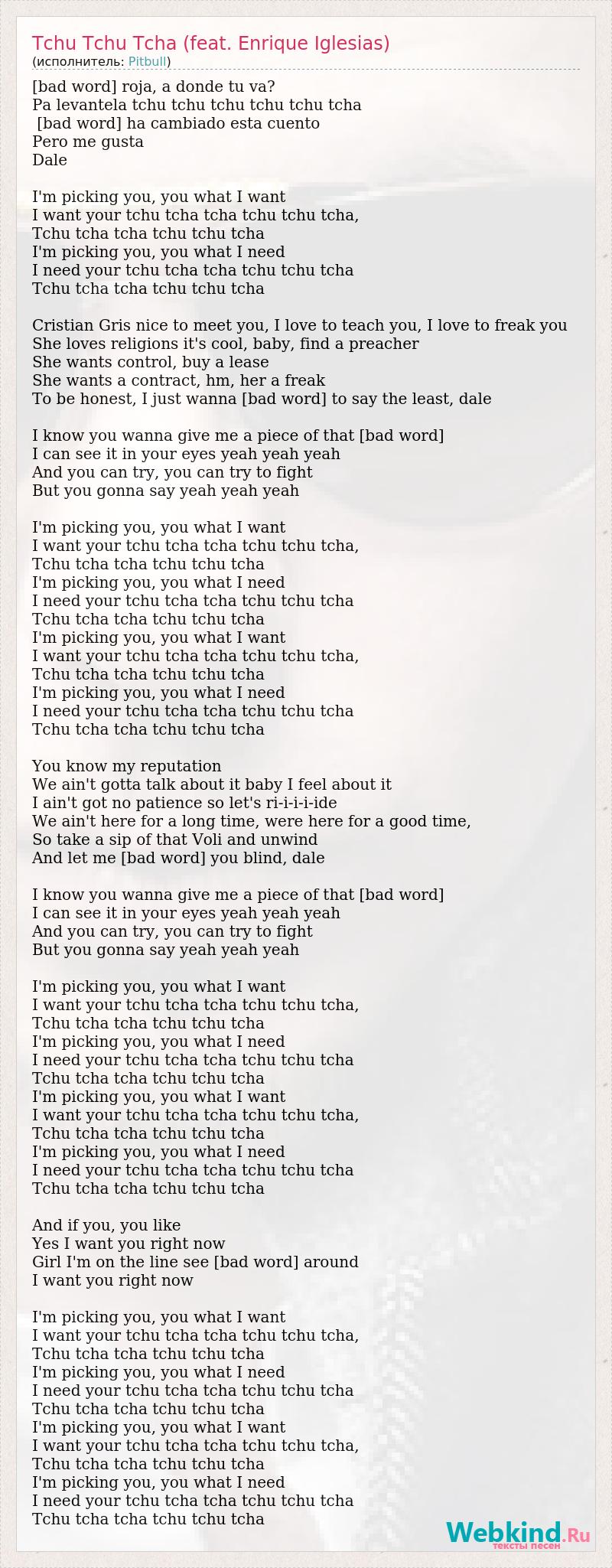 А как ты думаешь, о чем песня "Tchu Tchu Tcha (feat. Enrique Iglesias)" ?