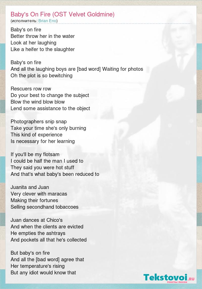 А как ты думаешь, о чем песня "Baby's On Fire (OST Velvet Goldmine)" ?